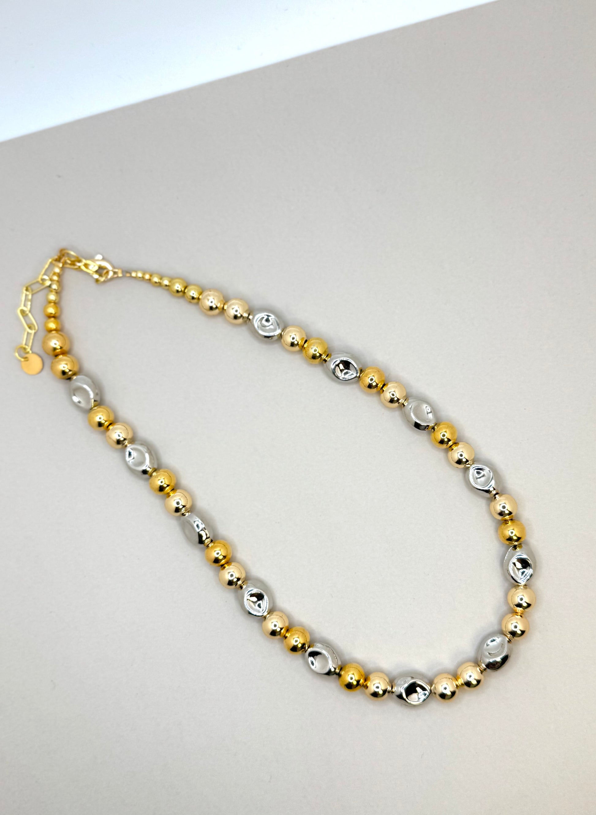 This boho-chic necklace is crafted with gold-plated and silver-plated beads and is the perfect accessory for this season.