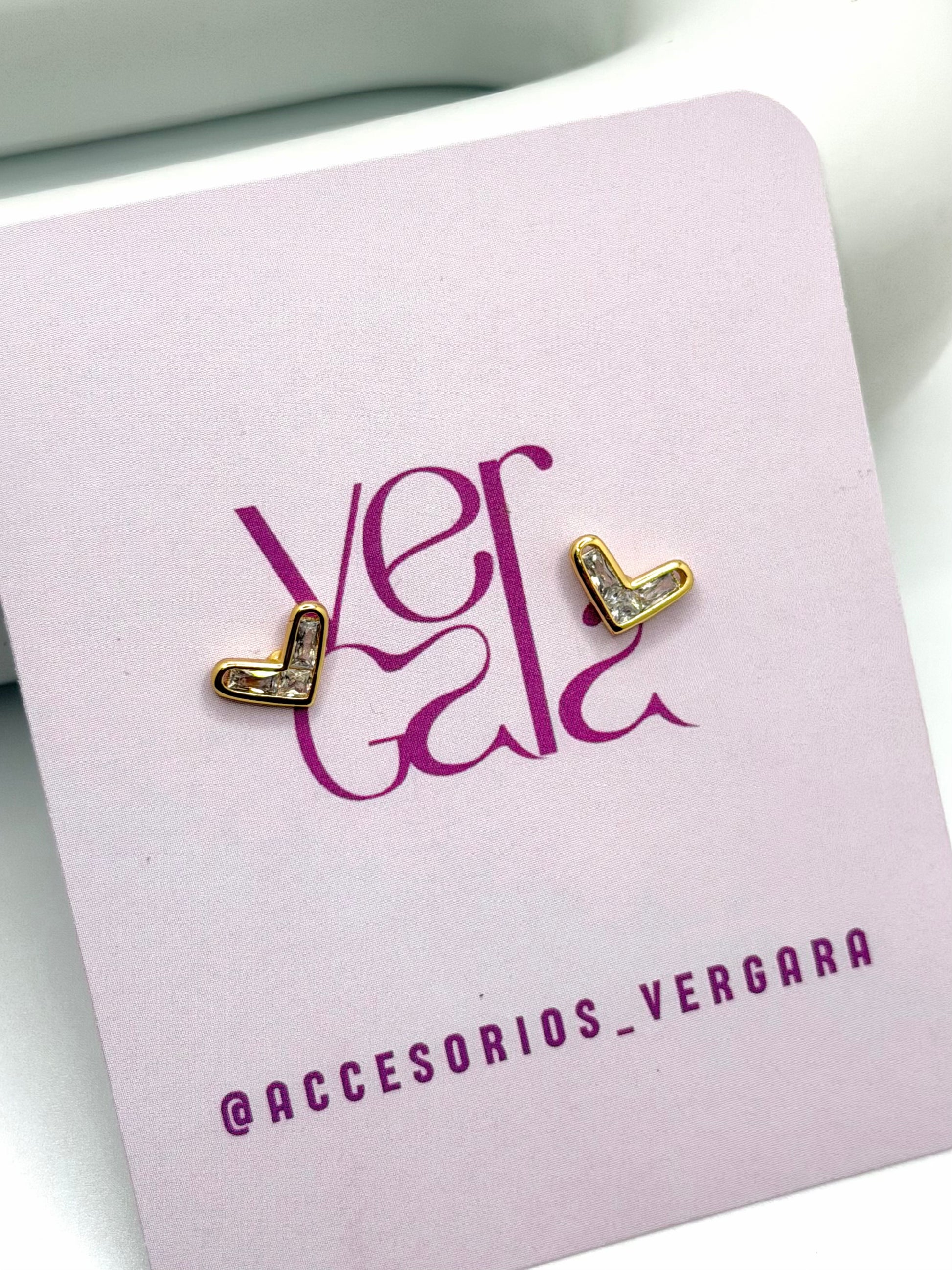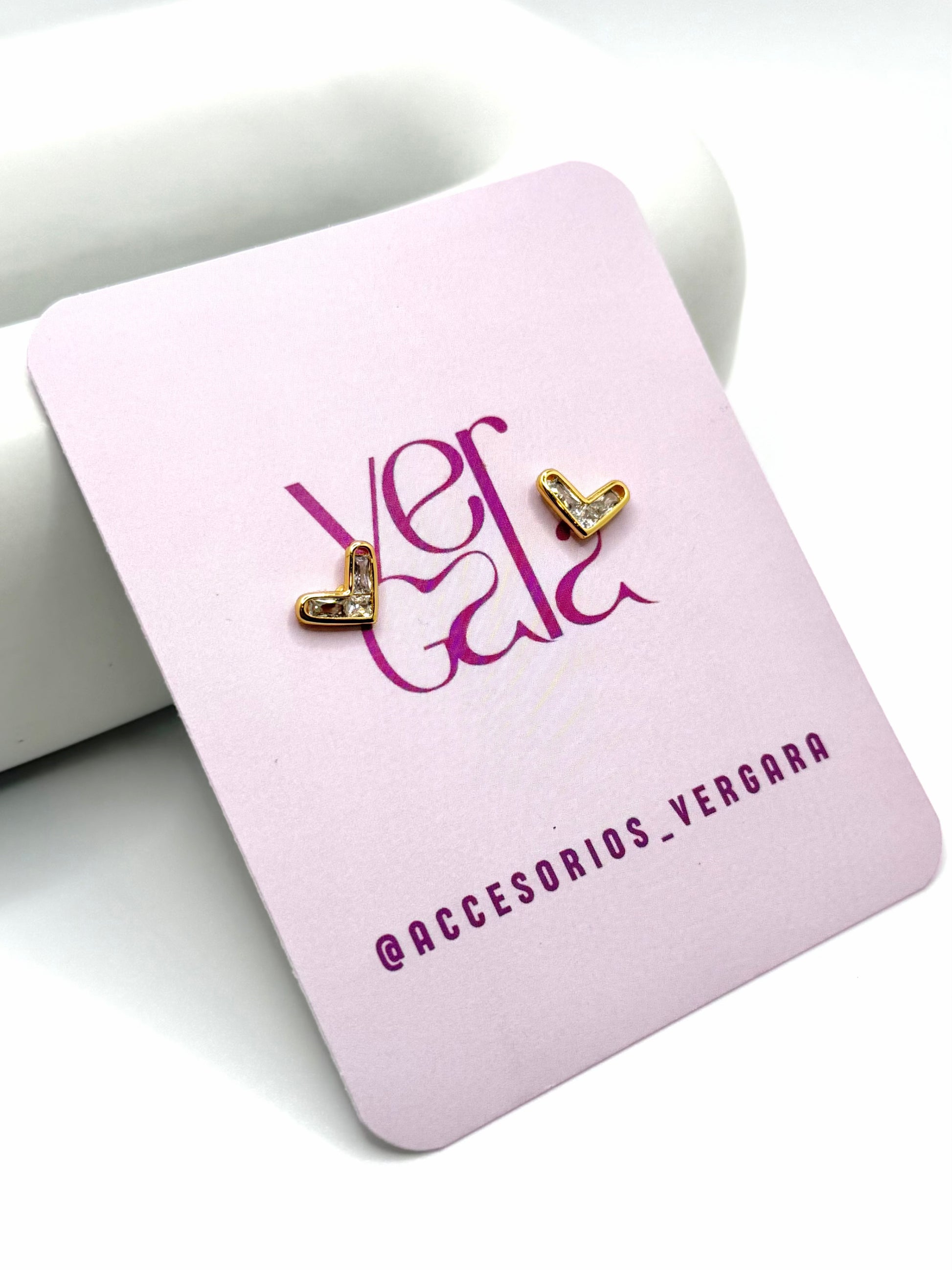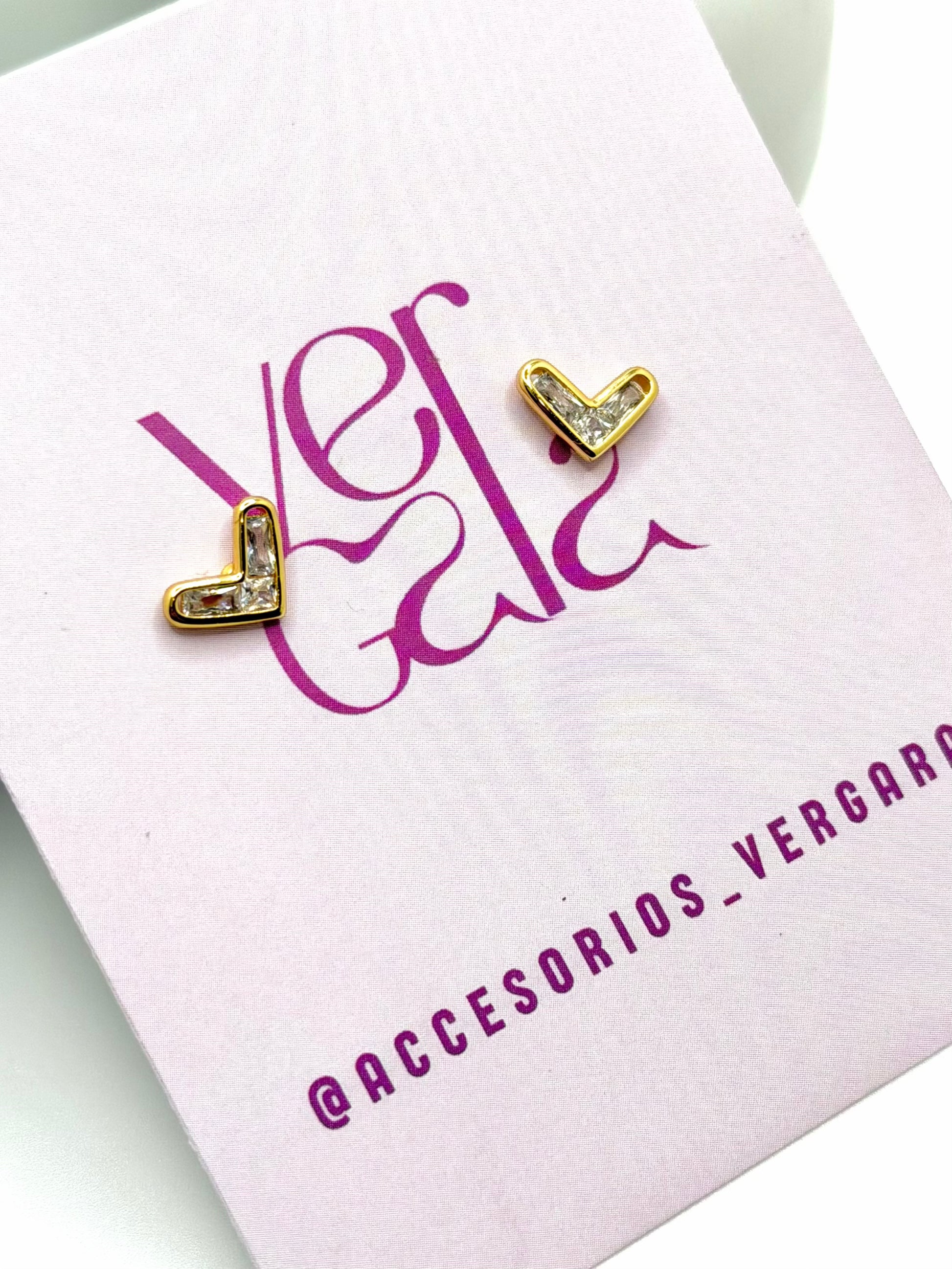 Gold-plated earrings in the shape of hearts with mini cubic zirconia.