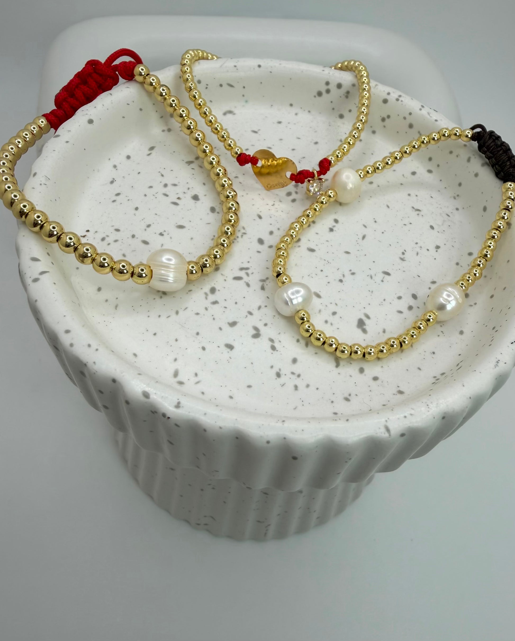 Pearls and red cord set bracelets and beads 18k Gold Plated Jewelry