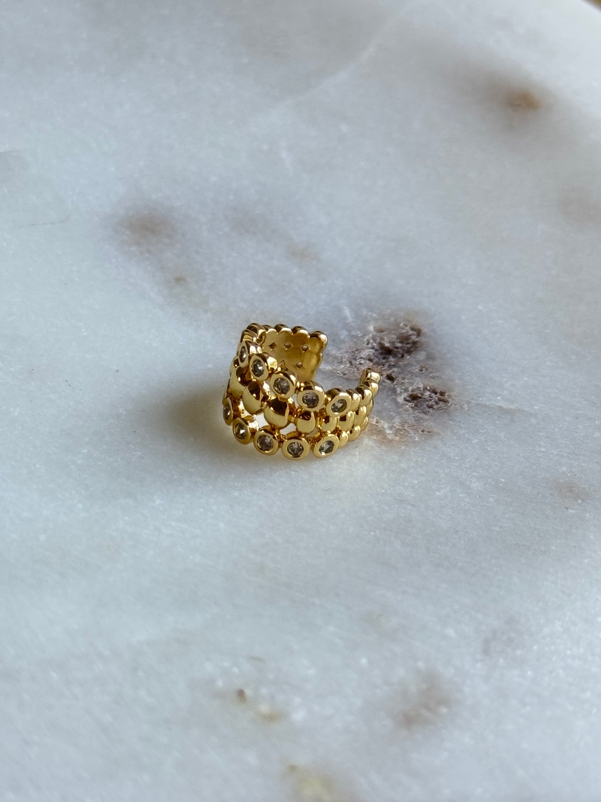 Adjustable earcuff with zircons.